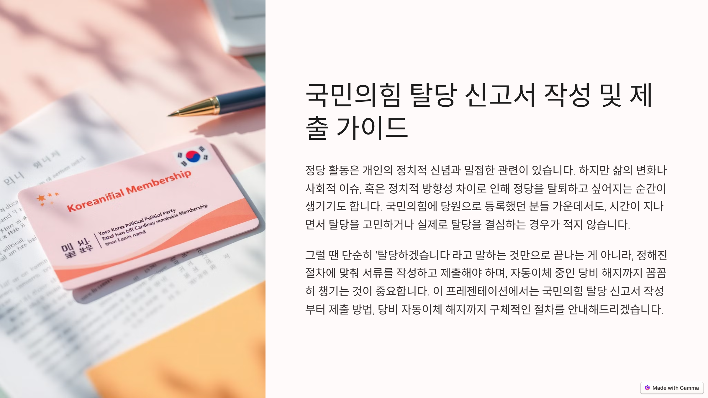 정당 활동을 하다 보면 개인적인 사정이나 정치적 가치관의 변화로 인해 탈당을 고민하게 되는 경우도 생길 수 있어요. 국민의힘에 당원으로 가입했지만, 이후 상황 변화에 따라 탈당을 원할 때는 정확한 절차와 방법을 따르는 것이 필요합니다. 아래에서는 국민의힘 탈당 신고서 작성 방법과 제출 절차, 당비 자동이체 해지 방법까지 함께 정리해볼게요.
