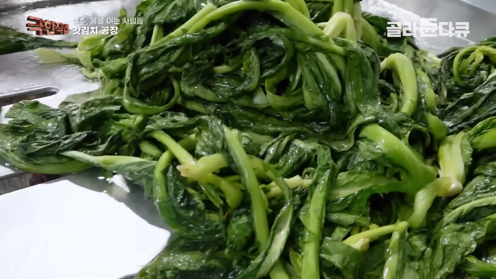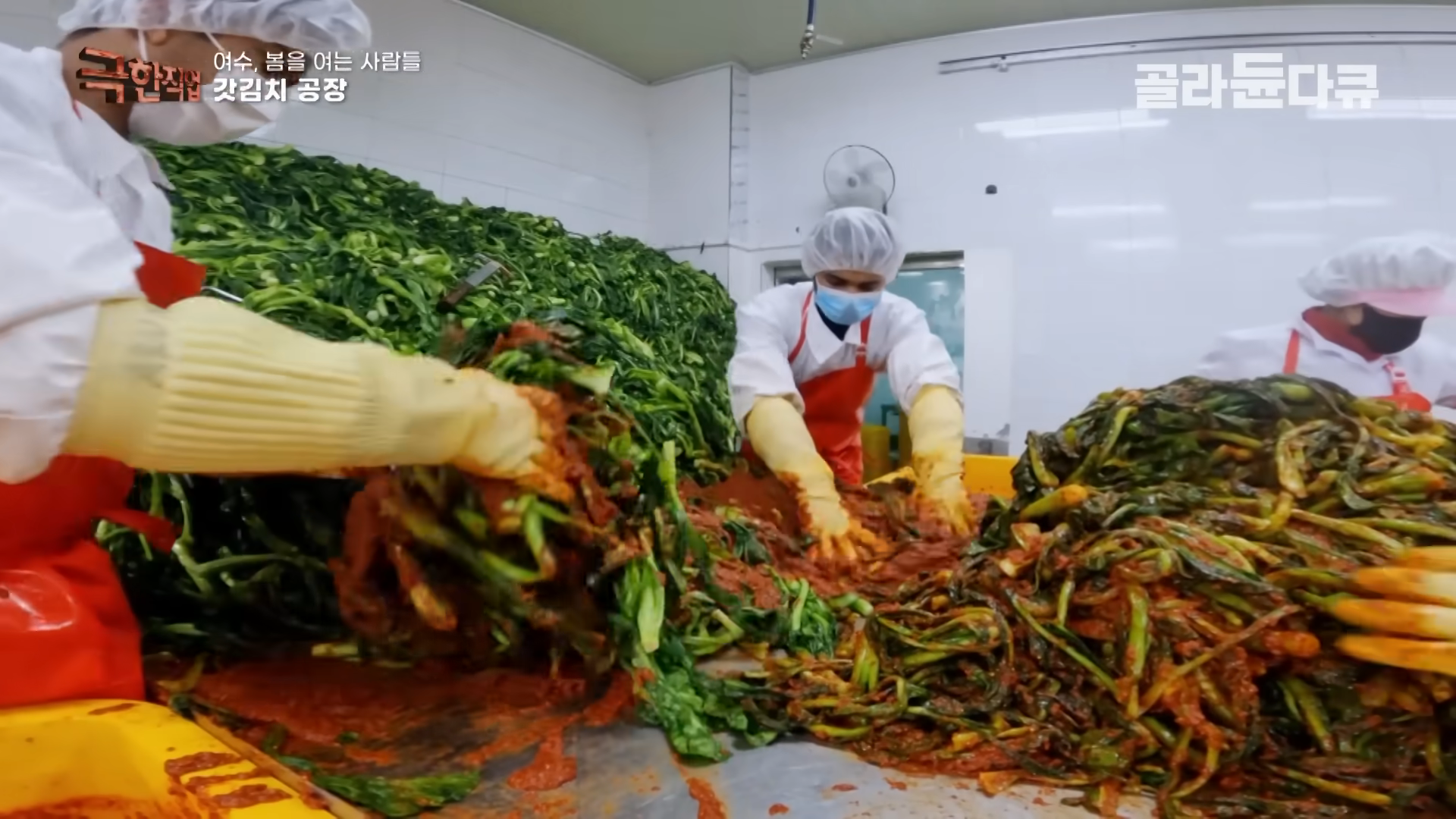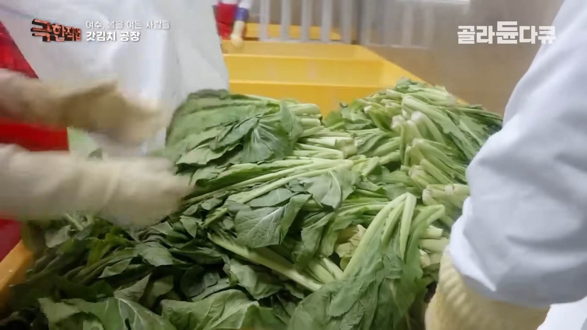 방송에서도 하루 1톤 이상 생산하는 갓김치 제조 현장이 공개되었습니다.