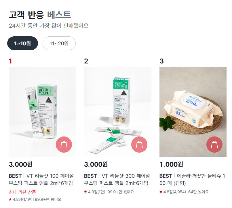 1만원 이상이어야 오늘배송 신청이 가능하니, 장바구니에 상품을 충분히 담아주세요.