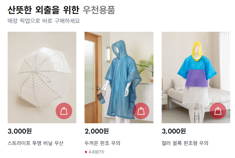| 매장 재고 조회 | 가까운 매장에 해당 상품이 있는지 확인 가능 |