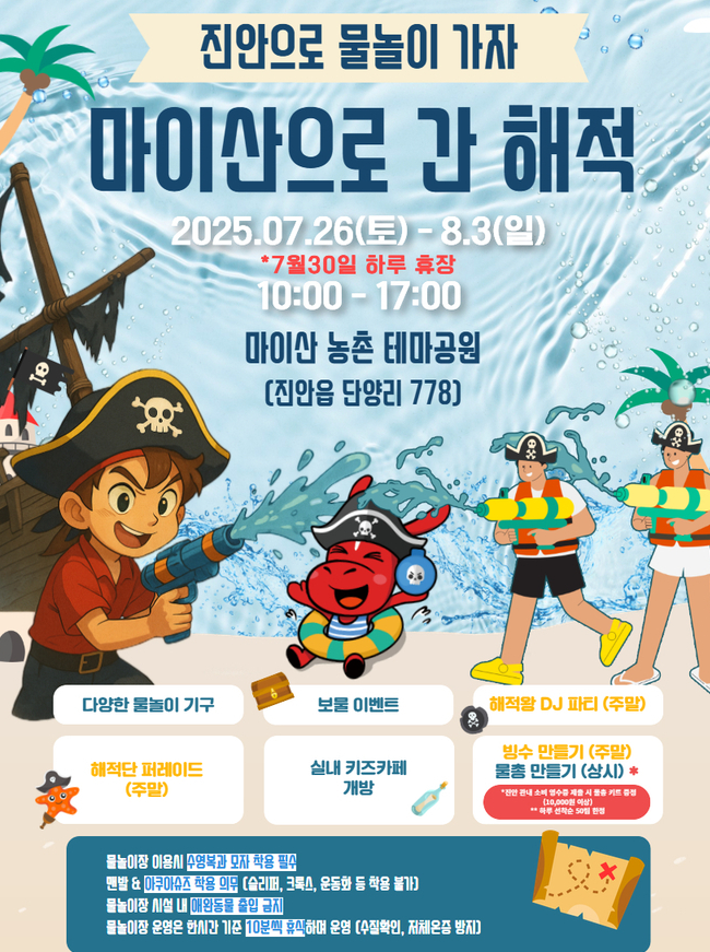"우리 아이 이번 여름방학, 어디 데려가지?" 고민은 이제 그만! 진안 마이산에 해적이 나타났다? 대형 물놀이장에서 시원한 여름을 만끽할 절호의 기회!