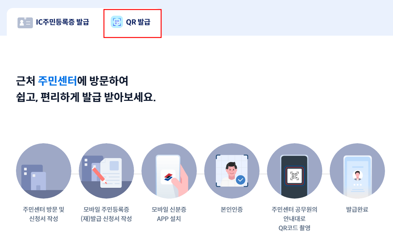 IC 주민등록증이 없는 경우 QR 코드를 활용하여 발급받을 수 있습니다.