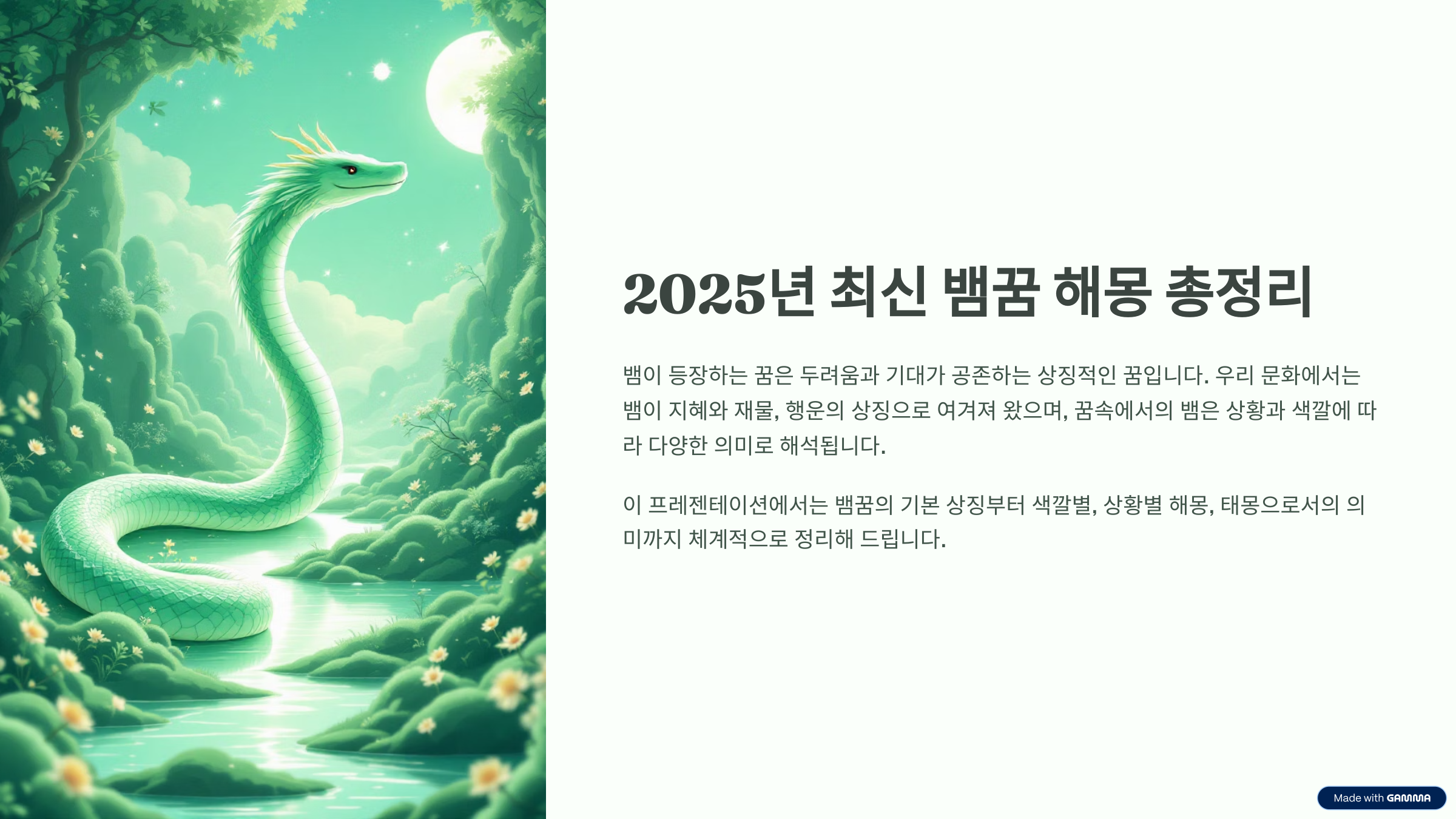 일상에서 뱀은 흔히 보기 어려운 동물이지만, 꿈에서 뱀이 나타났을 때는 왠지 모르게 인상에 남는 경우가 많아요. 불길한 느낌일 수도 있고, 반대로 좋은 징조로 받아들여질 수도 있죠. 실제로 한국에서는 뱀을 지혜, 재물, 다산의 상징으로 보기도 하지만, 위험이나 불안을 암시하는 존재로 여겨지기도 해요. 오늘은 뱀 꿈이 어떤 의미를 갖는지, 상황과 색깔에 따라 정리해볼게요.