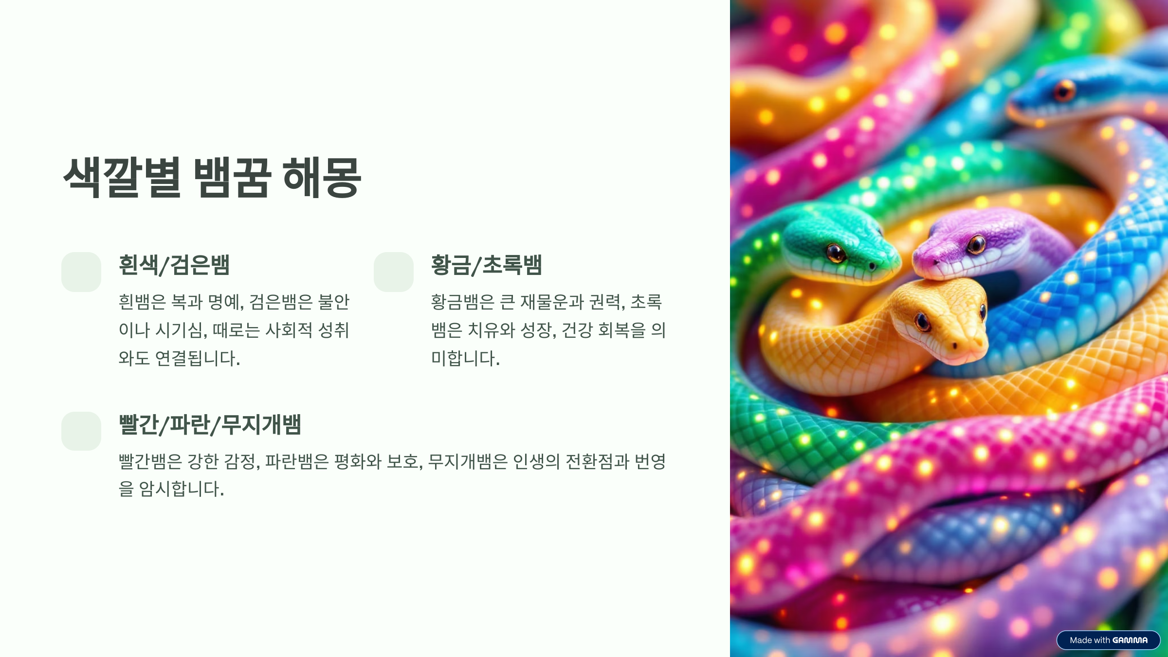 1. 색깔에 따라 달라지는 뱀 꿈 의미