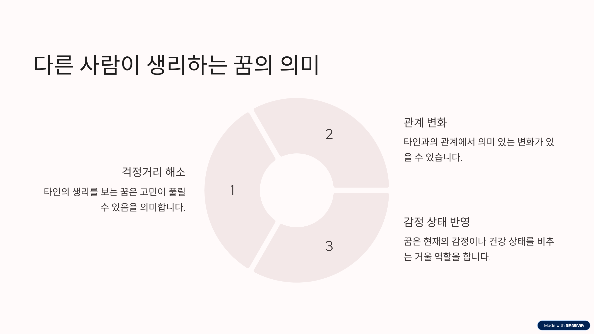 딸이 생리하는 꿈은 실제로 초경을 앞두었거나, 딸에게 변화가 생기는 징조일 수 있어요. 다른 사람이 생리하는 꿈은 그 사람과의 관계에 변화를 의미할 수도 있고, 걱정이 사라지거나 긍정적인 일이 생긴다는 신호로 해석되기도 해요.