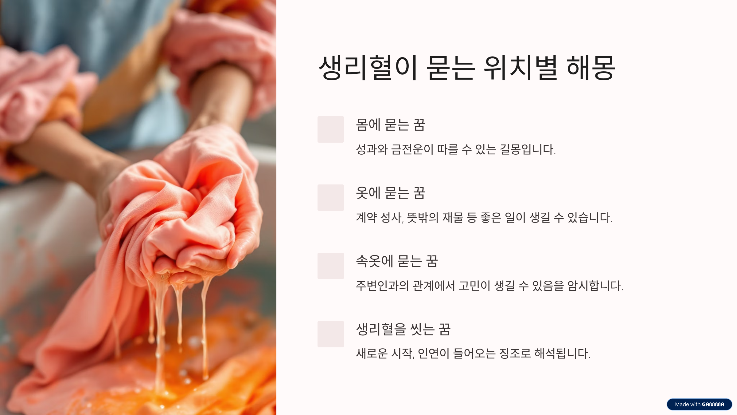 생리하는 꿈 해몽 총정리 – 상황별 의미와 감정 해석 안내입니다.