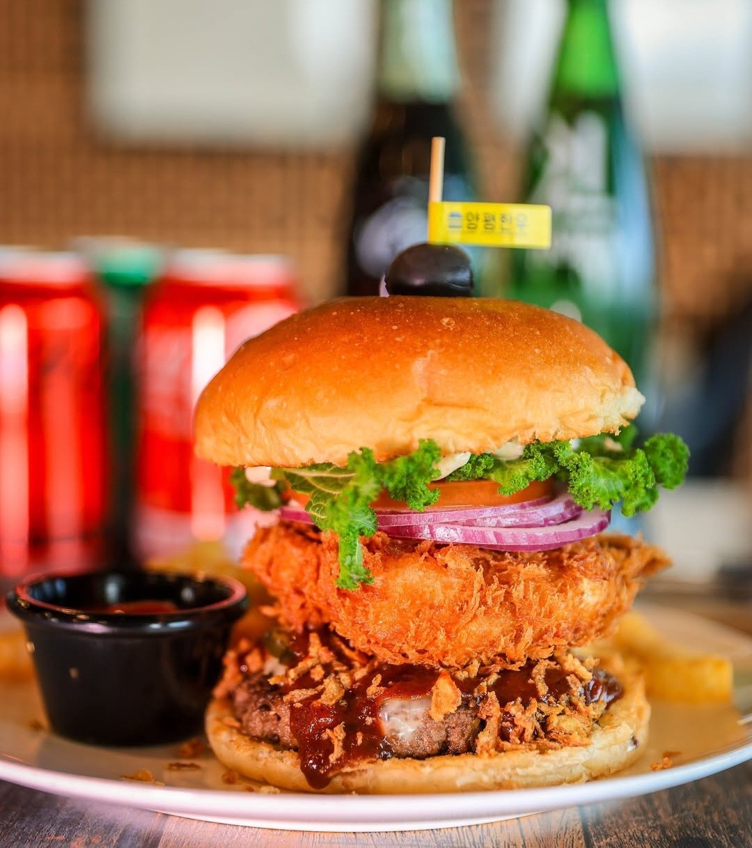 이곳은 25년 넘게 버거를 만들어온 부부가 직접 운영하고 있어요. 햄버거라고 하면 자극적인 맛을 떠올리기 쉬운데, 여기는 달라요. 천연 발효종으로 만든 빵, 저온 숙성 비프 패티, 와인으로 숙성한 포크 패티, 그리고 신선한 통새우로 만든 새우 패티까지 모든 재료가 수제예요. 특히 19가지 수제 소스도 과일과 채소를 사용해 직접 만들어서, 자극적이지 않고 깔끔한 맛이 느껴지는 게 특징이에요.