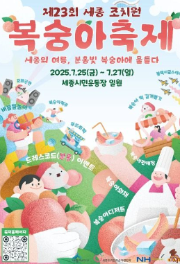 여러분, 드디어 기다리고 기다리던 그 축제가 돌아왔어요! 🍑 세종시의 자랑, 달콤함의 대명사 '조치원복숭아'가 주인공인 '제23회 조치원복숭아 축제'가 오는 7월 25일부터 27일까지 세종시를 핑크빛으로 물들일 예정입니다. 올해 축제는 역대급 즐거움을 선사하기 위해 심혈을 기울여 준비했다고 하는데요, 그냥 복숭아만 맛보는 축제가 아니라는 사실! 상상 이상의 재미와 감동, 그리고 잊지 못할 추억까지 선물할 이 축제, 제대로 즐기려면 뭘 알아야 할까요? 지금부터 그 모든 것을 꼼꼼하게 파헤쳐 드릴게요. 이거 모르면 손해니까, 끝까지 집중해주세요!