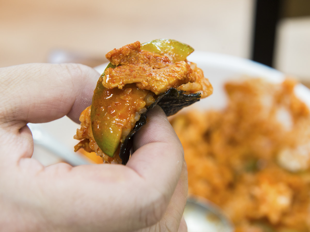 이곳의 매운맛은 고춧가루 베이스의 칼칼한 맛으로, 캡사이신의 자극적인 매운맛보다는 재료 본연의 매운 맛이 살아 있습니다. 맵기 조절은 불가능하며, 매운 음식을 좋아하는 사람들에게는 중독성 강한 맛으로 알려져 있습니다. 찌개 속에는 돼지고기와 잘 익은 김치가 듬뿍 들어 있으며, 국물은 자극적이지만 계속 손이 가는 맛입니다. 밥에 계란, 김, 콩나물 등을 넣어 비벼 먹는 것이 이 집의 대표 스타일입니다.
