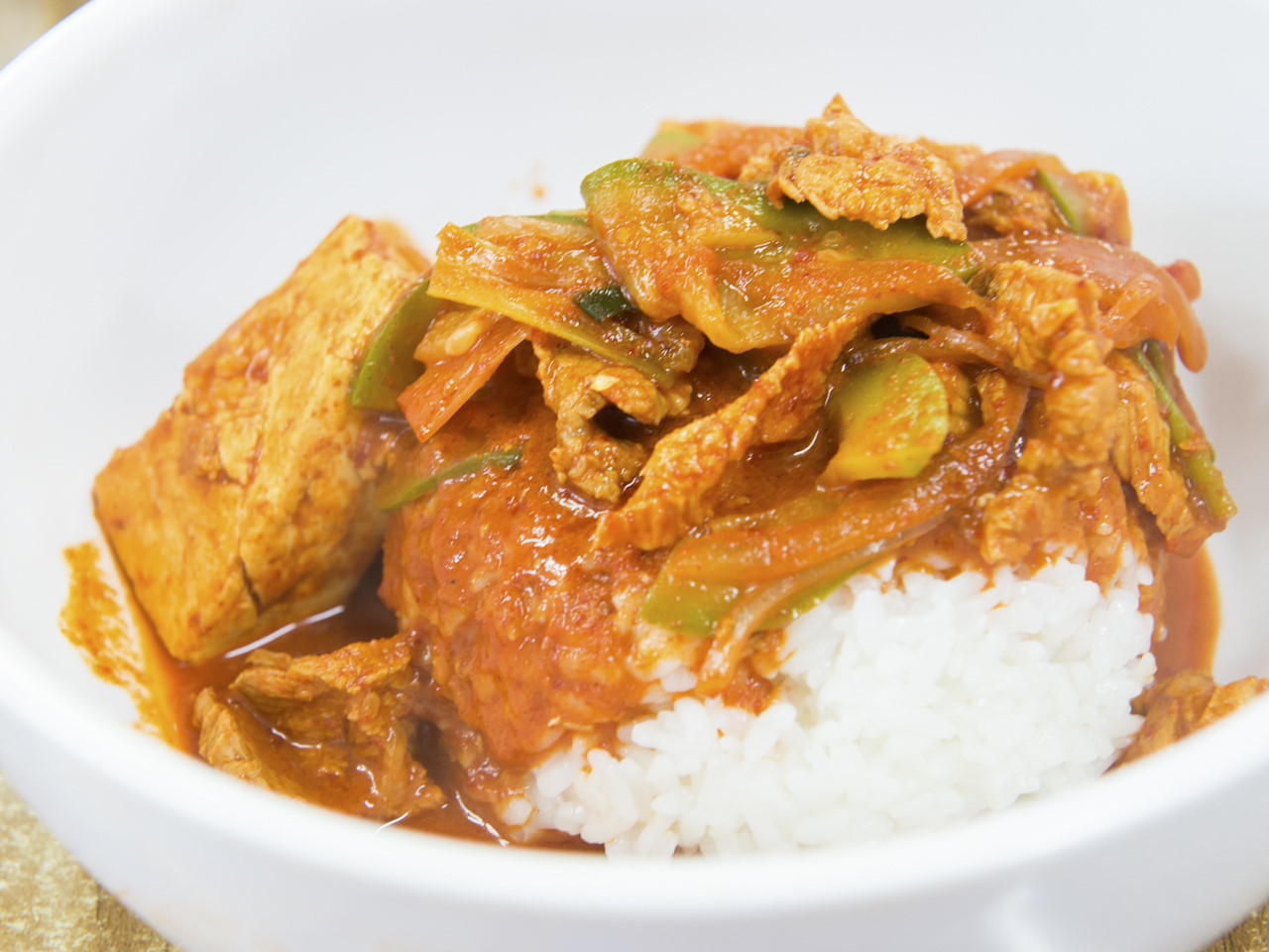 A. 짜글이에 가까운 느낌으로, 국물보다는 건더기가 많은 편이며 비벼 먹기 좋은 스타일입니다.