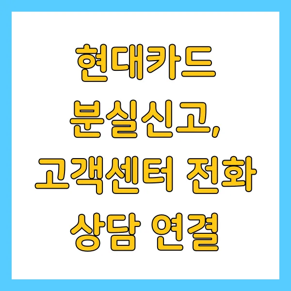 - 전화 분실 신고: 현대카드 고객센터(1577-6000)로 전화해서 분실 신고를 해주세요.