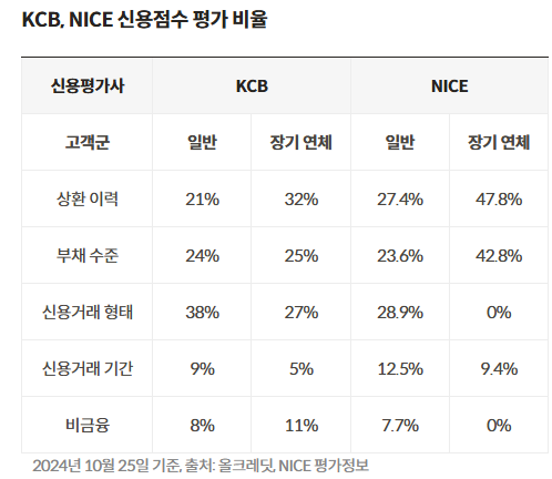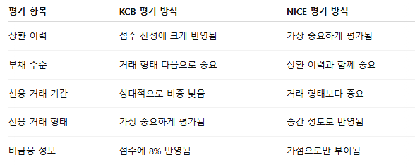 | 평가 항목 | KCB | NICE |